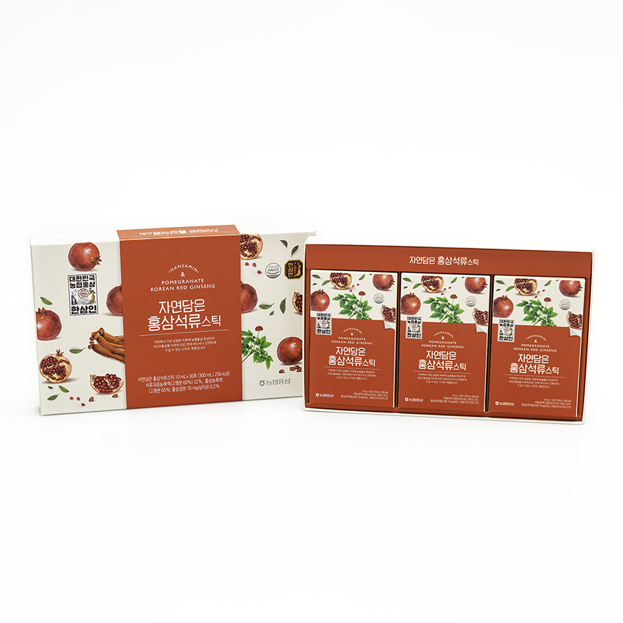 Nước tinh khiết; lựu cô đặc 32% (lựu 100%, xuất xứ Iran); hồng sâm cô đặc 0,2% (6 năm tuổi, hàm lượng chất rắn 60%, thành phần hồng sâm 70 mg/g, Hàn Quốc).