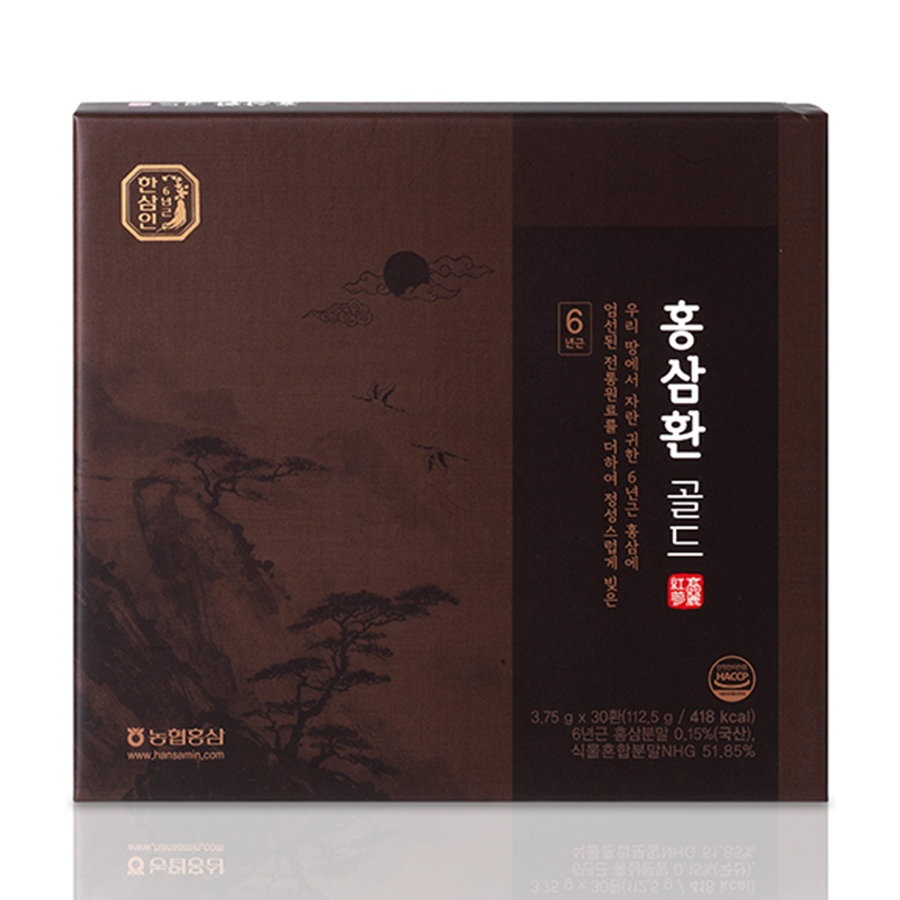 Bột hỗn hợp thảo dược NHG (Thược dược (Hàn Quốc), Vỏ quýt (Hàn Quốc), Cát căn, quả sơn tra, Cam thảo, Câu kỷ tử, Quế, Thục địa hoàng, Sơn thù du, Hoàng kỳ, Đương quy, táo đỏ, Ngũ vị tử, Viễn chí, nhung hươu). Mật ong (Hàn Quốc), Glycerin, Bột Trầm hương (Indonesia), Bột Hồng sâm 0.15% (Hàn Quốc, thành phần hồng sâm trên 30 mg/g. *Tỷ lệ kết hợp nguyên liệu hồng sâm: Củ hồng sâm 70%, rễ hồng sâm 30%).